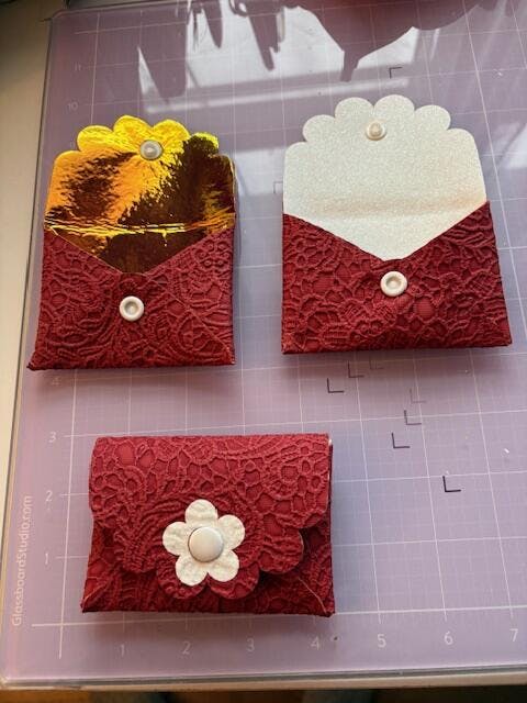⭐These designs will both cut from faux leather for the wallet layer. Then cut the optional liner layer and decorative outer layers from heat transfer (or permanent) vinyl.